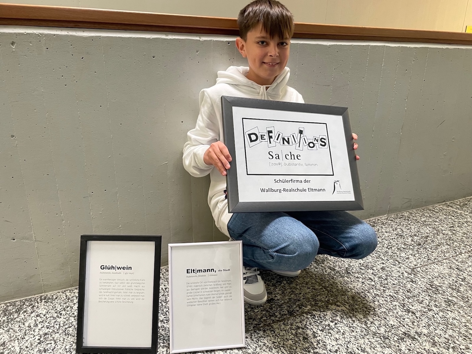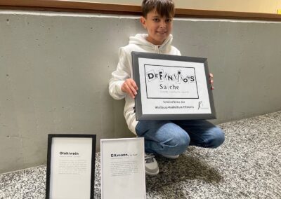 Im Frühling 2024 gewann das Unternehmen „Definitionssache“, das individuell gestaltete, regionalbezogene Poster auf „Blauer Engel“-Papier produzierte, den 2. Preis beim Landeswettbewerb der Schülerfirmen in Bayern.